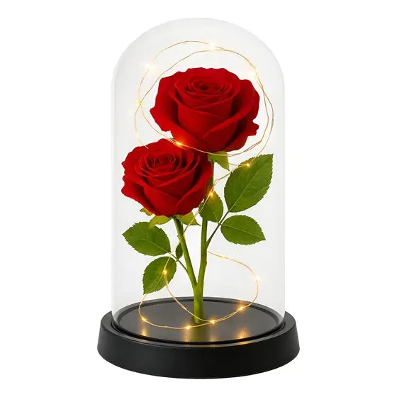 A Beleza da Eternidade: A rosa fixa no interior, protegida e iluminada, é uma metáfora visual de que o que é belo e verdadeiro pode ser preservado para sempre.